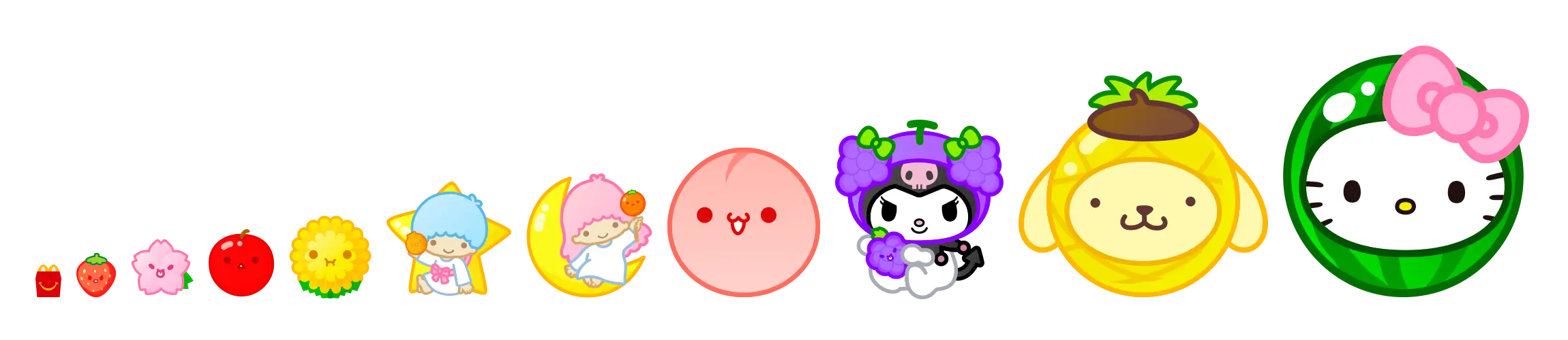 本ゲームは、ハッピーセット「サンリオキャラクターズ」に登場する株式会社サンリオの人気キャラクターたちをテーマに、購入者限定でお楽しみいただけるオンラインコンテンツです。「スイカゲーム」のシンプルで直感的な遊び方やルールはそのままに、ハッピーセット「サンリオキャラクターズ」の世界観を取り入れた、昨年に続く完全オリジナルのゲームです。